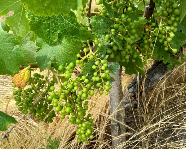 La récolte 2023 s’est déroulée seulement quelques mois après l’acquisition des parcelles (qui n’avaient pas été travaillées depuis la récolte 2022) et sous pression du mildiou très présent cette année-là. Avec une attention particulière, pratiquant une cueillette sélective et un tri rigoureux directement sur la vigne, nous avons tenu à réaliser un test. De belles grappes de Merlot et quelques-unes de Côt (Malbec) ont permis de vinifier un vin prometteur qui attend tranquillement dans des dames-jeannes (bonbonnes